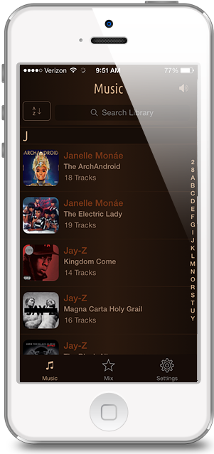 - Sortable music library